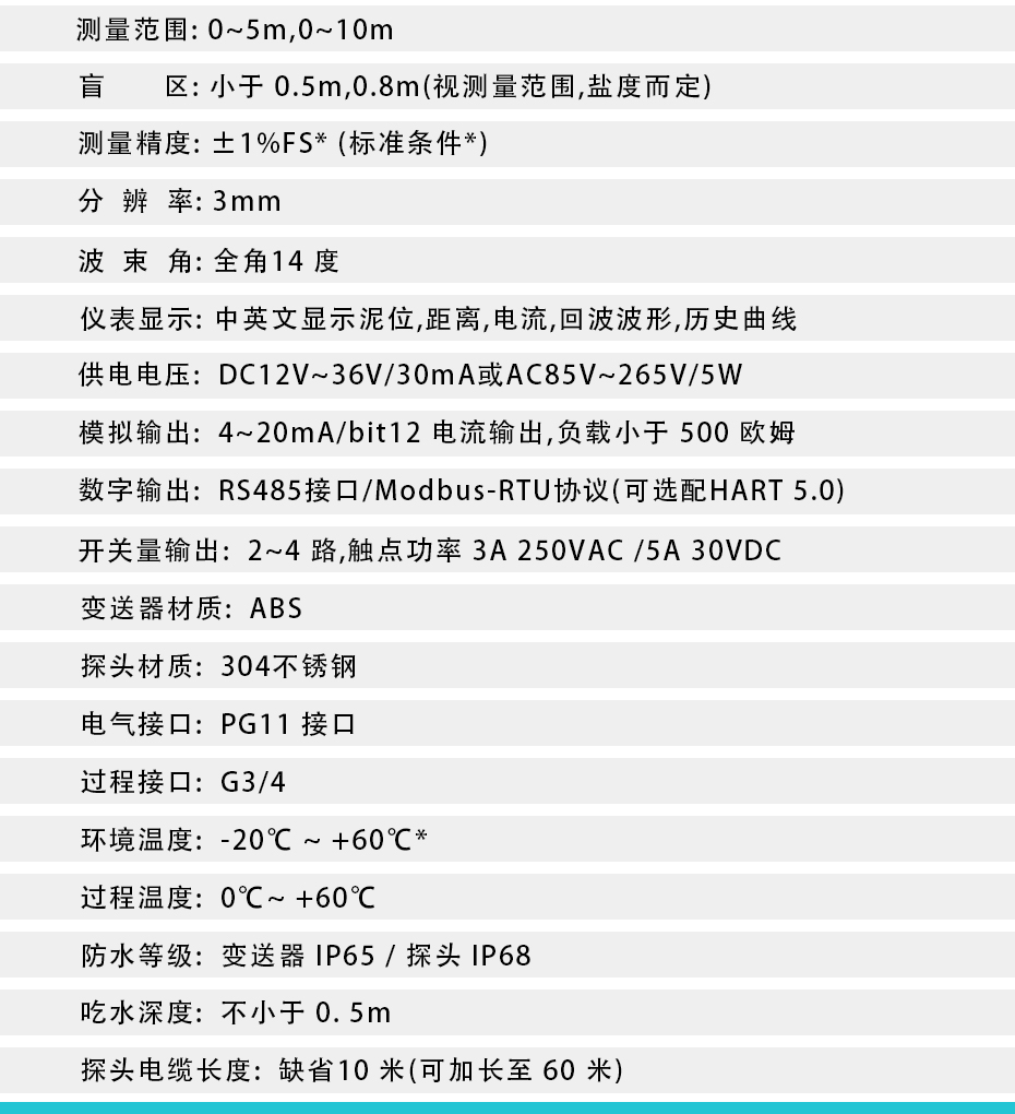 超聲波泥位計是一種基于超聲波回波檢測原理的工業儀器,主要用于廢水處理過程中污泥界面高度與厚度的實時監測,應用于水廠、污水處理廠、洗煤廠等領域的沉淀池及濃縮池